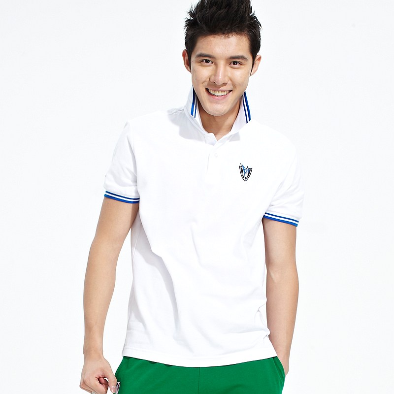 白色領袖撞色,男女時尚T恤款式定制,可刺繡公司標志