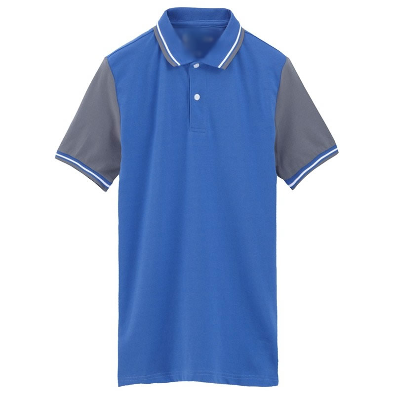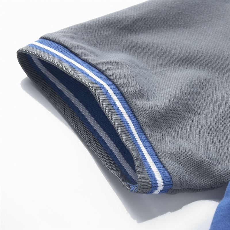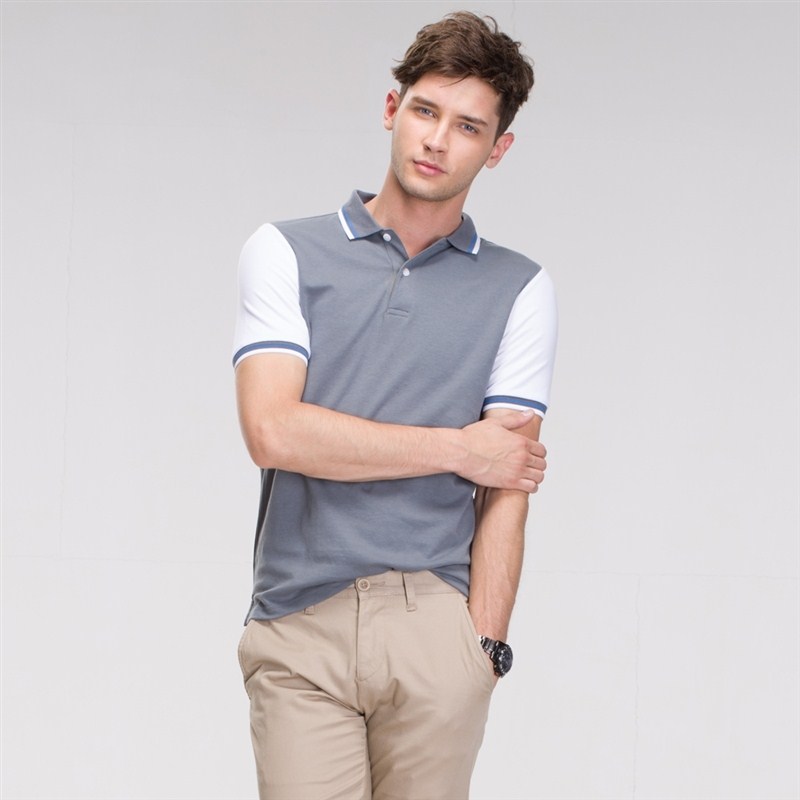 花灰色衣領袖口撞色,翻領短袖T恤衫,時尚款式定制,精梭純棉品質