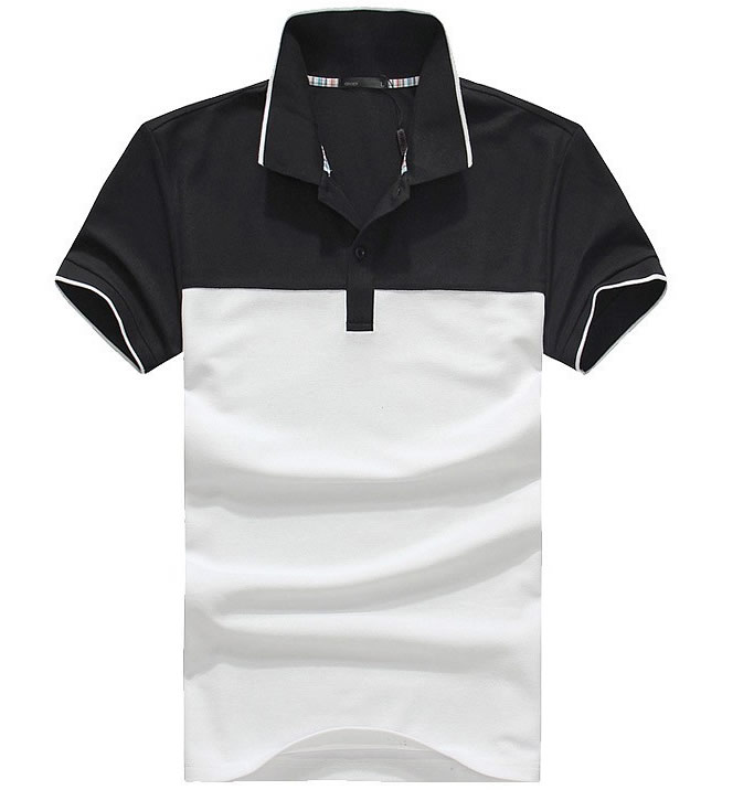 花灰色衣領袖口撞色,翻領短袖T恤衫,時尚款式定制,精梭純棉品質