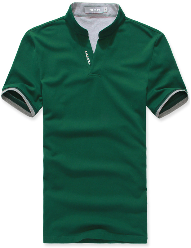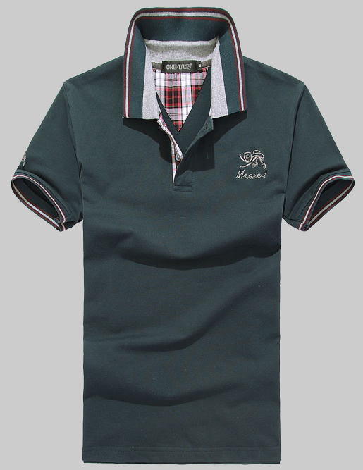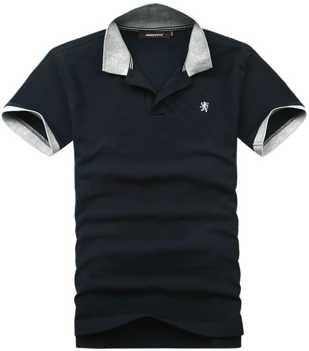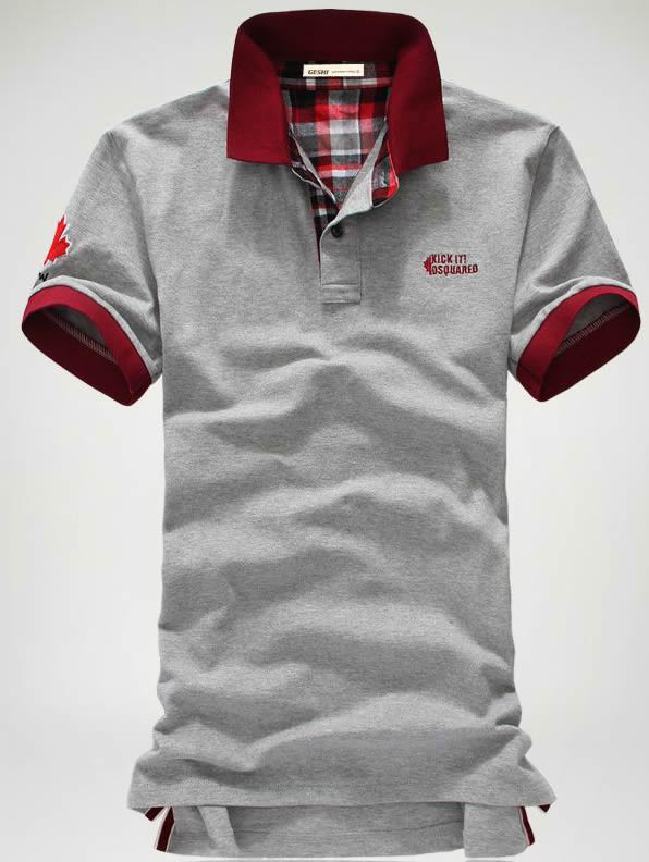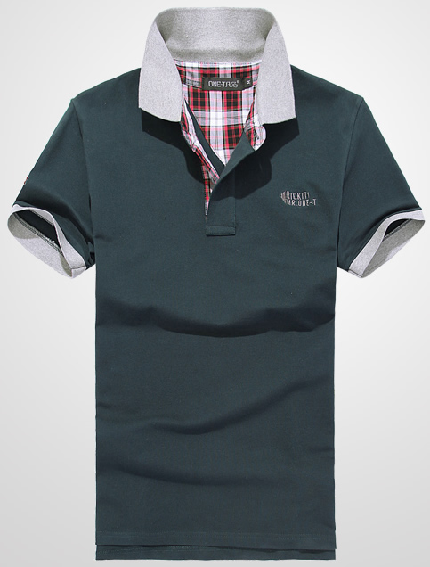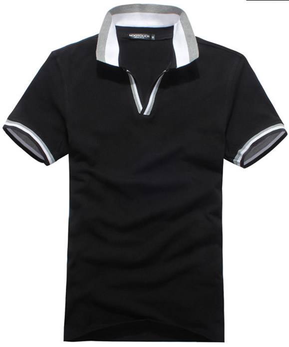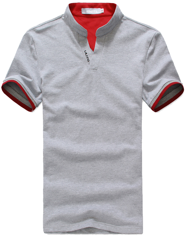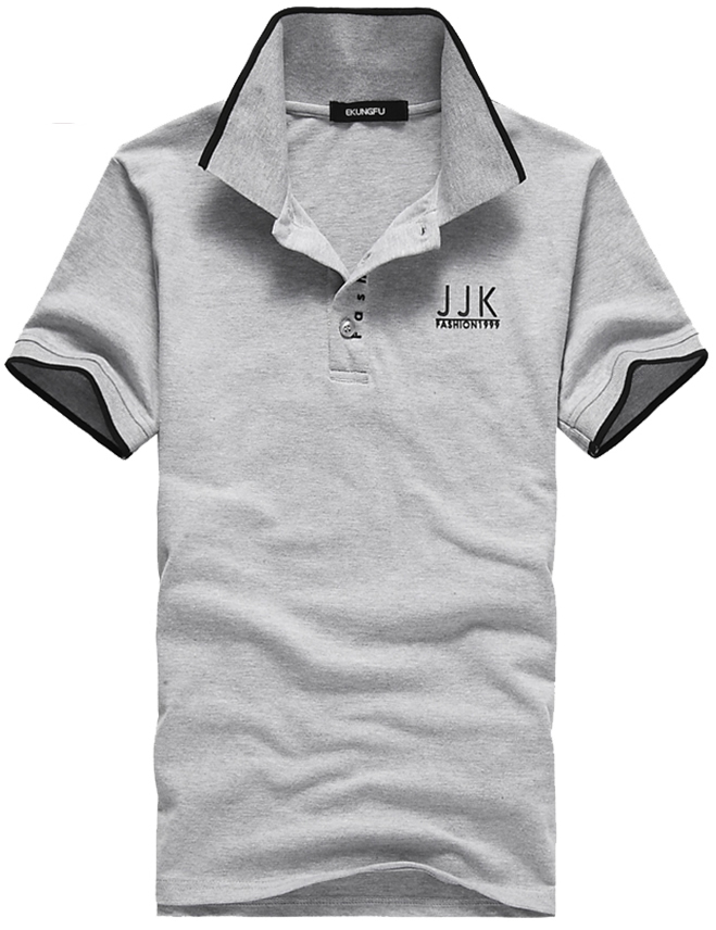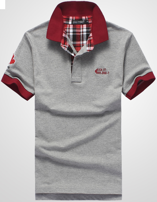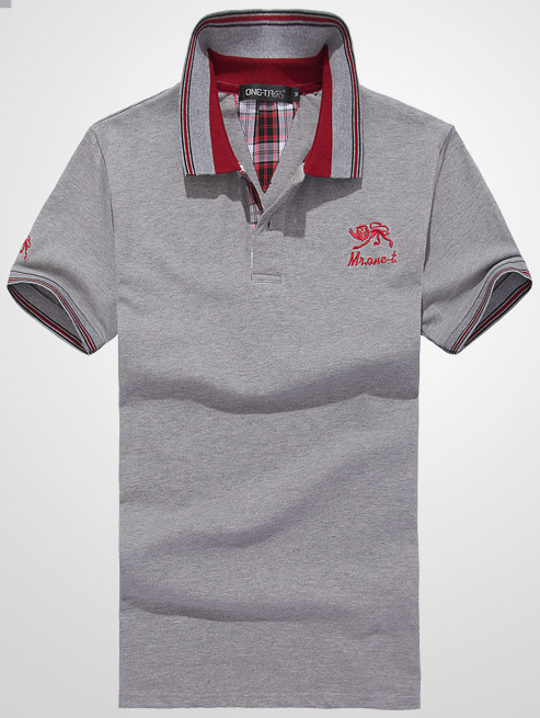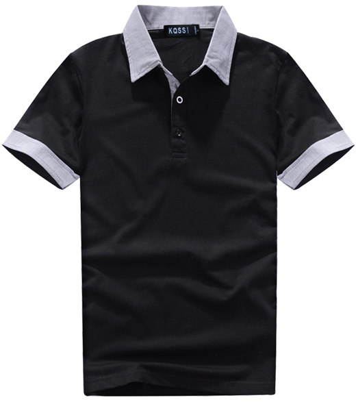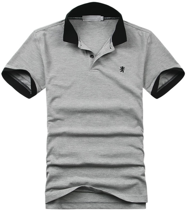 花灰色衣領袖口撞色,翻領短袖T恤衫,時尚款式定制,精梭純棉品質