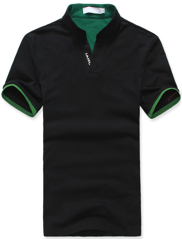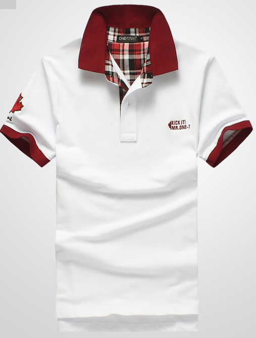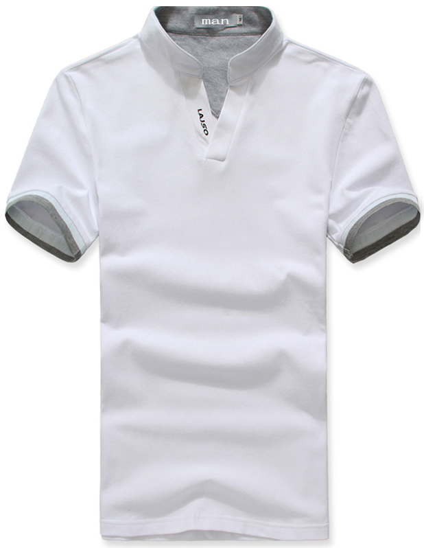 白色領袖撞色,男女時尚T恤款式定制,可刺繡公司標志