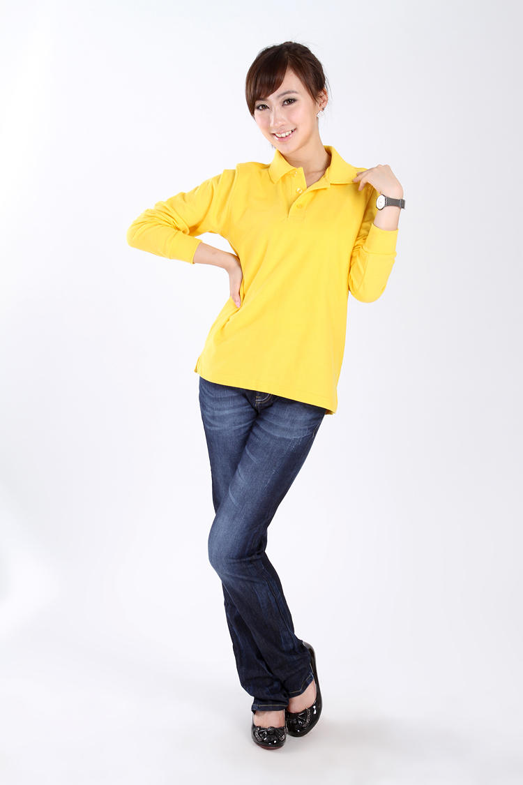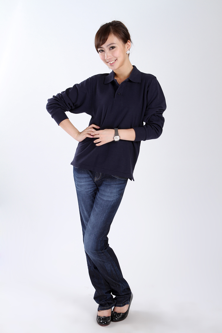 翻領(lǐng)長(zhǎng)袖T恤衫,純色款式定制,經(jīng)典男女款式