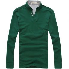 綠色男款V領長袖T恤衫工廠加工制作 可寄樣品