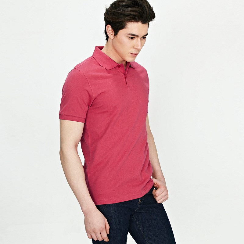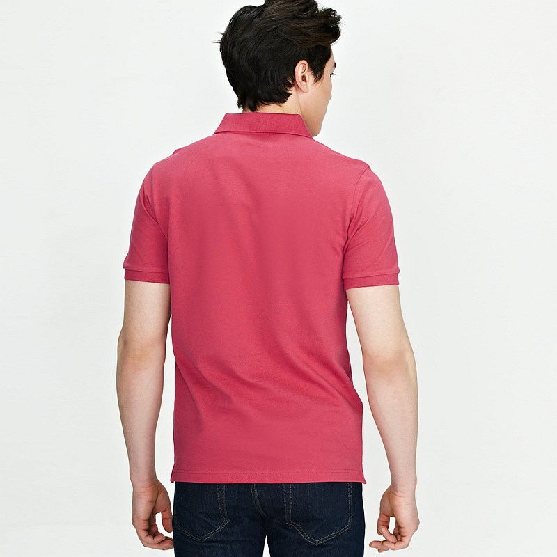 > 紅色商務男裝翻領T恤免費繡字