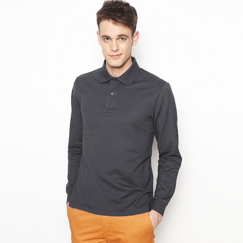 深灰色長袖翻領(lǐng)T恤衫免費(fèi)提供繡花服務(wù)