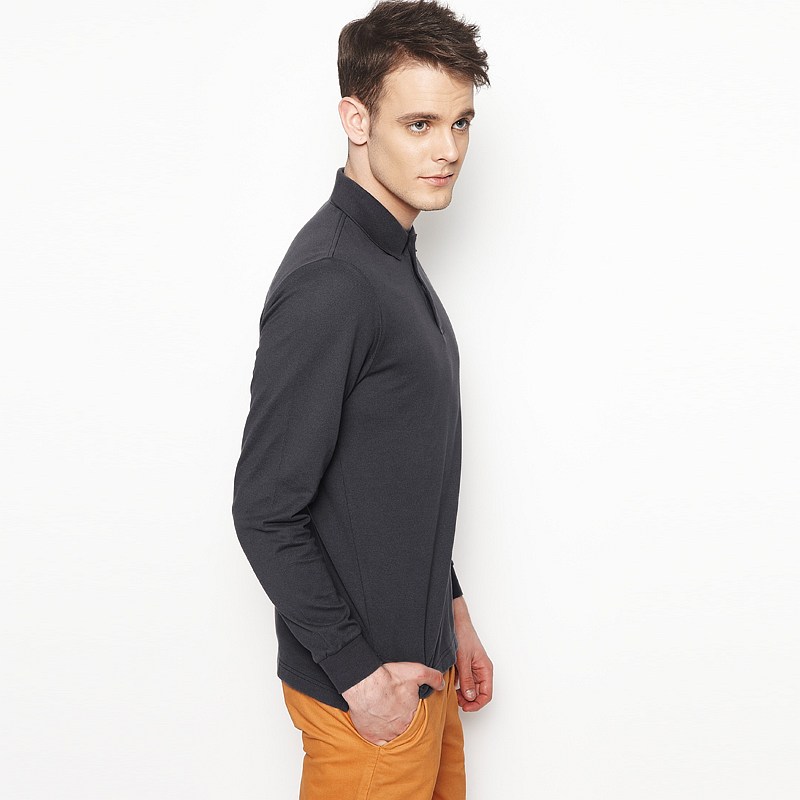 > 深灰色長袖翻領(lǐng)T恤衫免費(fèi)提供繡花服務(wù)