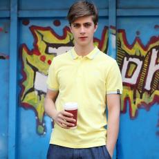 【定制】米黃色時尚POLO衫 男士全棉T恤衫加工