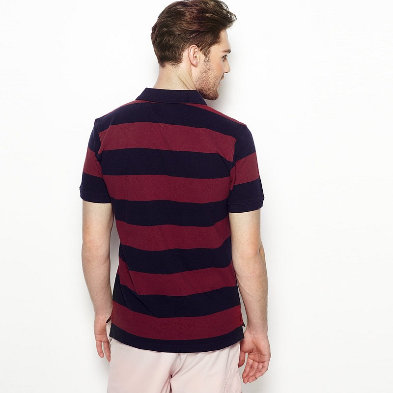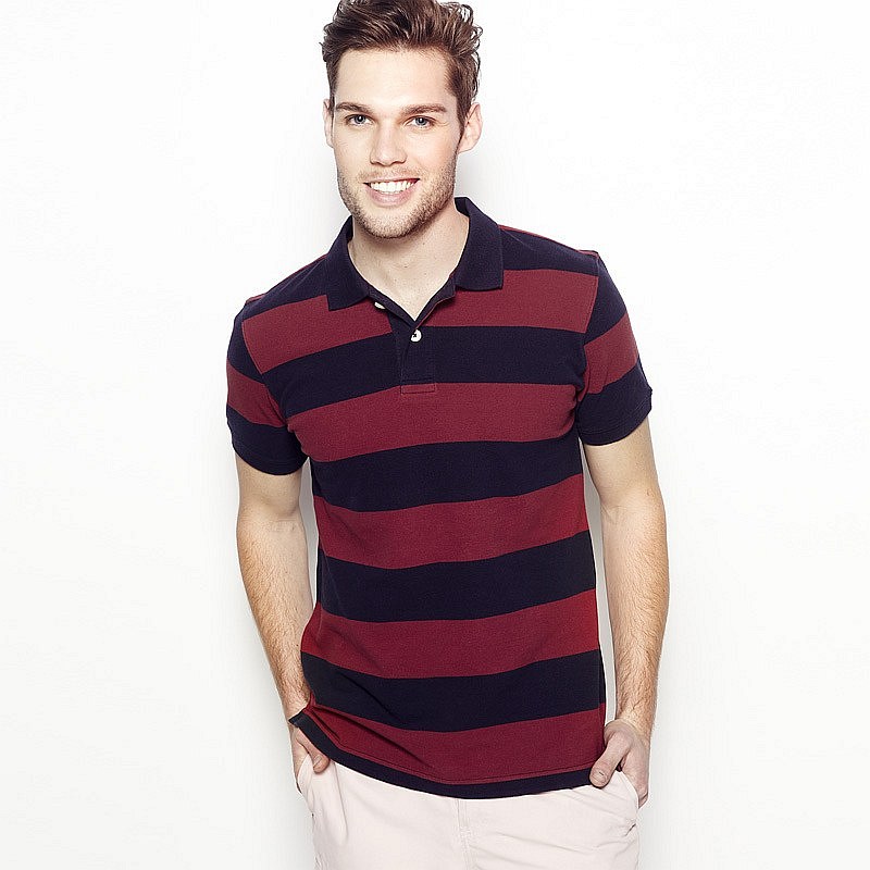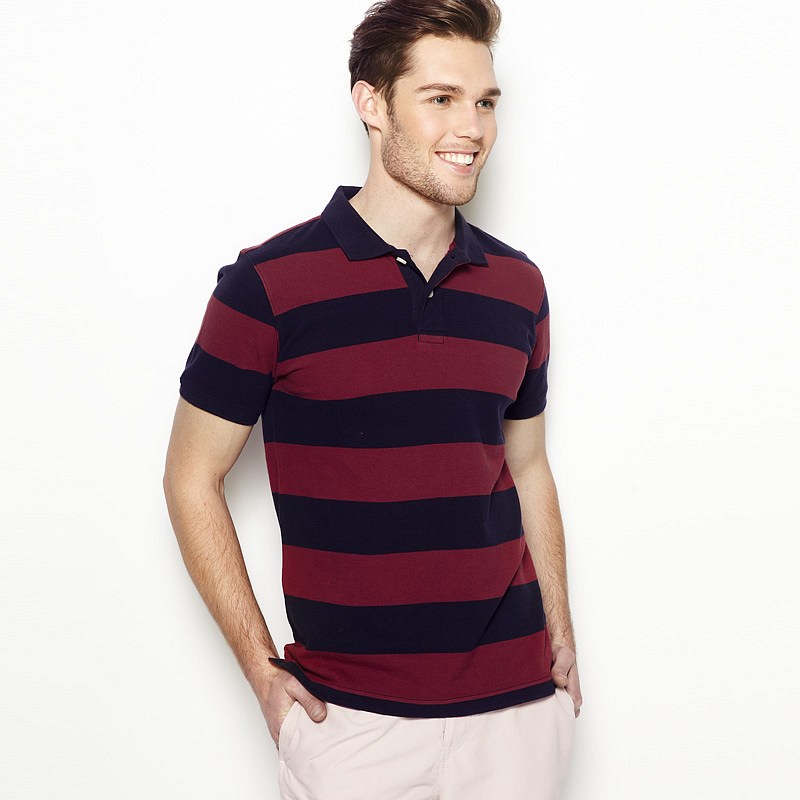 【定制】玫紅色條紋T恤衫男款訂制 純棉廠家生產