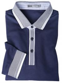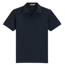 藍色T恤衫搭配花灰色領袖,款式簡單而不單調。高紗織珠地面料,手感細膩。精選天然環保棉成份面料,精梳珠地面料,透氣舒適。