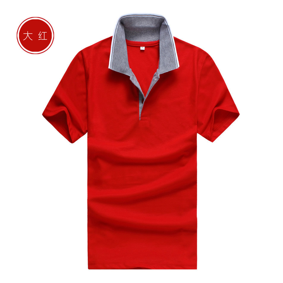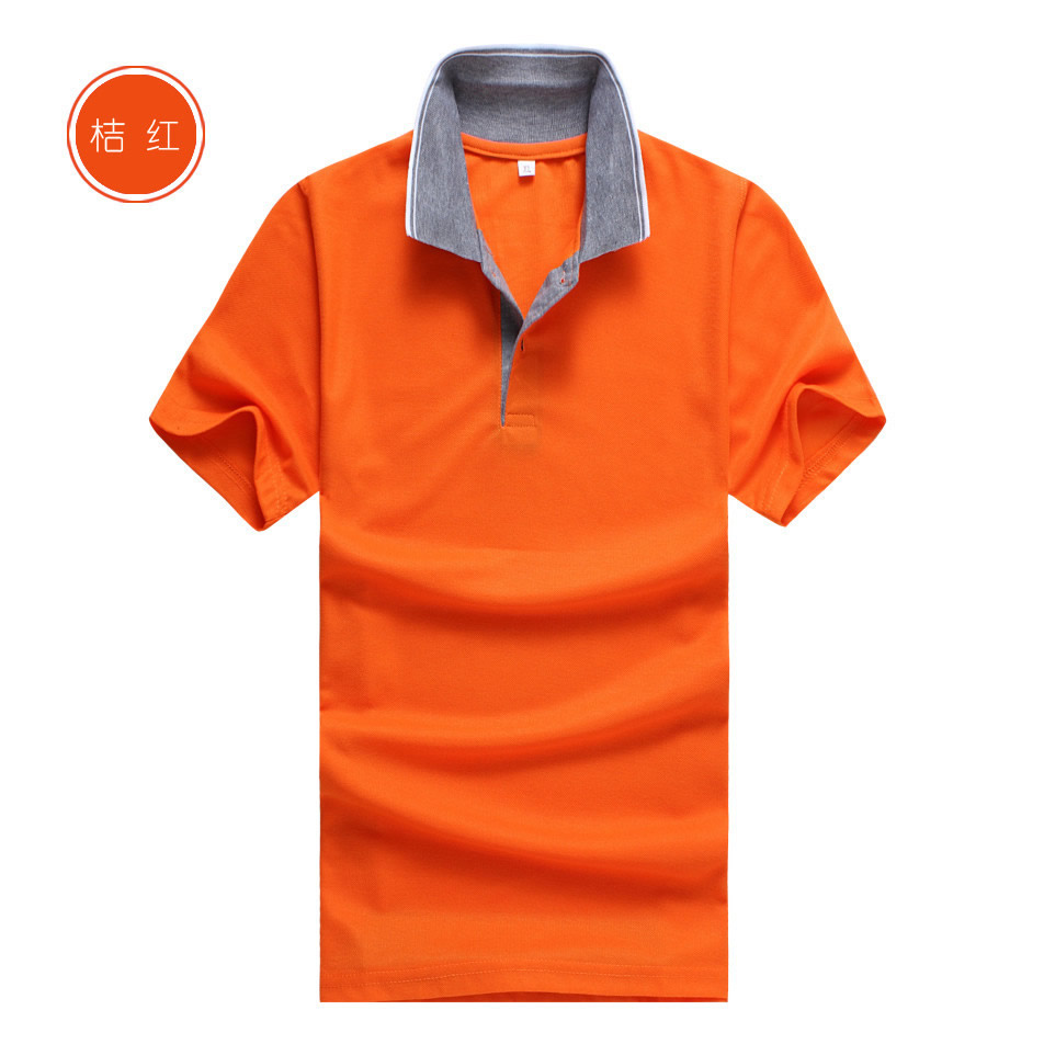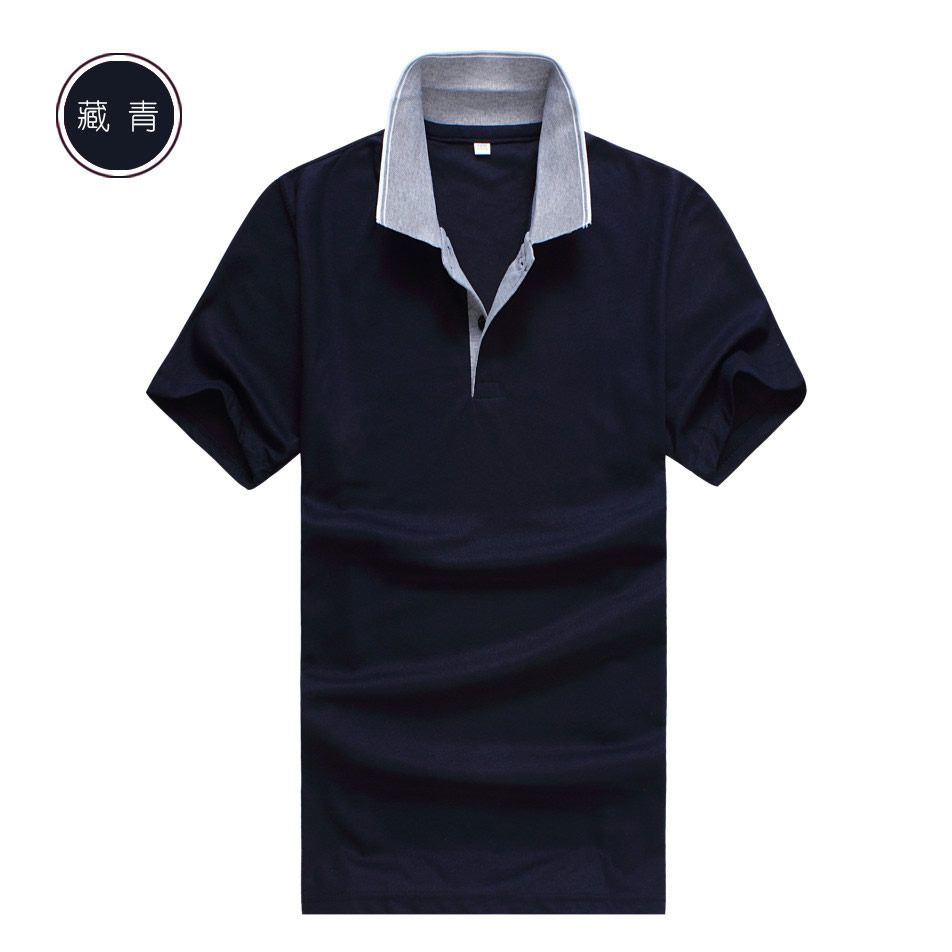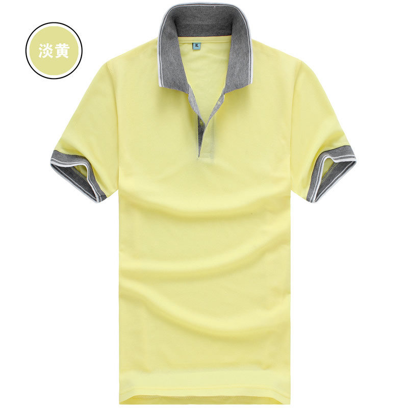 花灰色衣領袖口撞色,翻領短袖T恤衫,時尚款式定制,精梭純棉品質