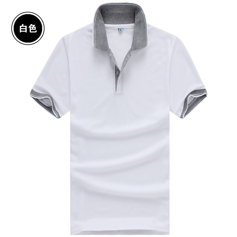 白色領袖撞色,男女時尚T恤款式定制,可刺繡公司標志