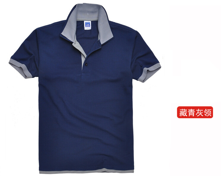 花灰色衣領(lǐng)袖口撞色,翻領(lǐng)短袖T恤衫,時尚款式定制,精梭純棉品質(zhì)