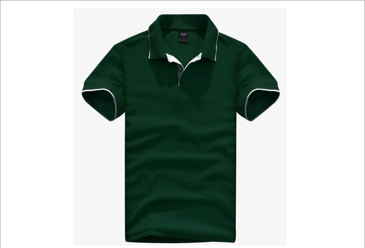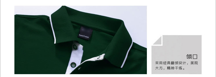 墨綠色珠地純棉,領(lǐng)袖白色間條撞色款式定制 1