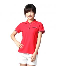【定制】紅色女士短袖T恤衫,純棉撞色加工設計