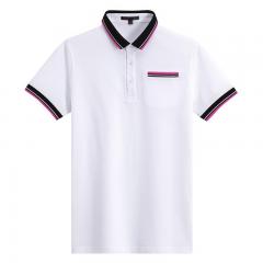 白色時(shí)尚翻領(lǐng)短袖T恤衫定制 精梭絲光棉材質(zhì)