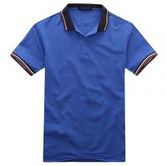 藍(lán)色男款短袖棉質(zhì)POLO衫 領(lǐng)袖撞色款式制作
