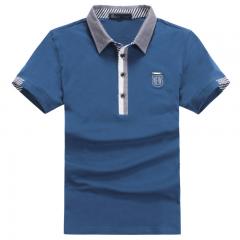 藍色男款男士短袖全棉POLO衫印制 可刺繡LOGO