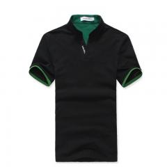 【定制】時(shí)尚黑色立領(lǐng)T恤衫制作 男士立領(lǐng)POLO衫加工