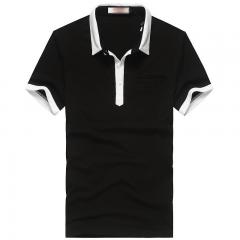 【定制】黑色襯領(lǐng)時(shí)尚T恤衫男士翻領(lǐng)T恤訂制-保羅