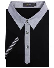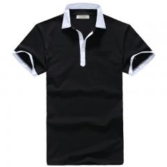 黑色男款短袖POLO衫 領袖撞色時尚款式制作