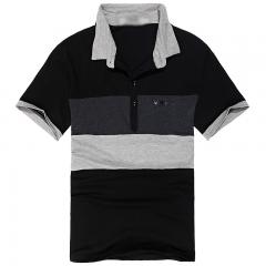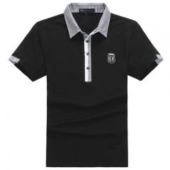 男士翻領短袖黑色純棉T恤衫 時尚款式設計制作