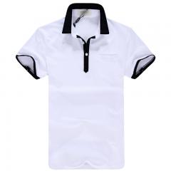 白色男款短袖精梭棉POLO衫 領袖撞色款式制作