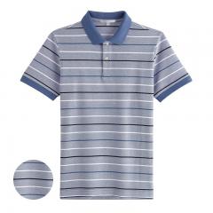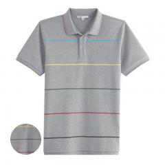 【定制】花灰色條紋純棉T恤衫 男士翻領(lǐng)短袖POLO訂做