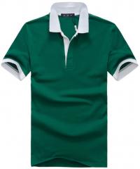 【定制】深綠色時尚小立領(lǐng)T恤衫訂制 男士流行款式