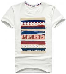 【定制】精梳拉架棉白色男款印花無領(lǐng)T恤